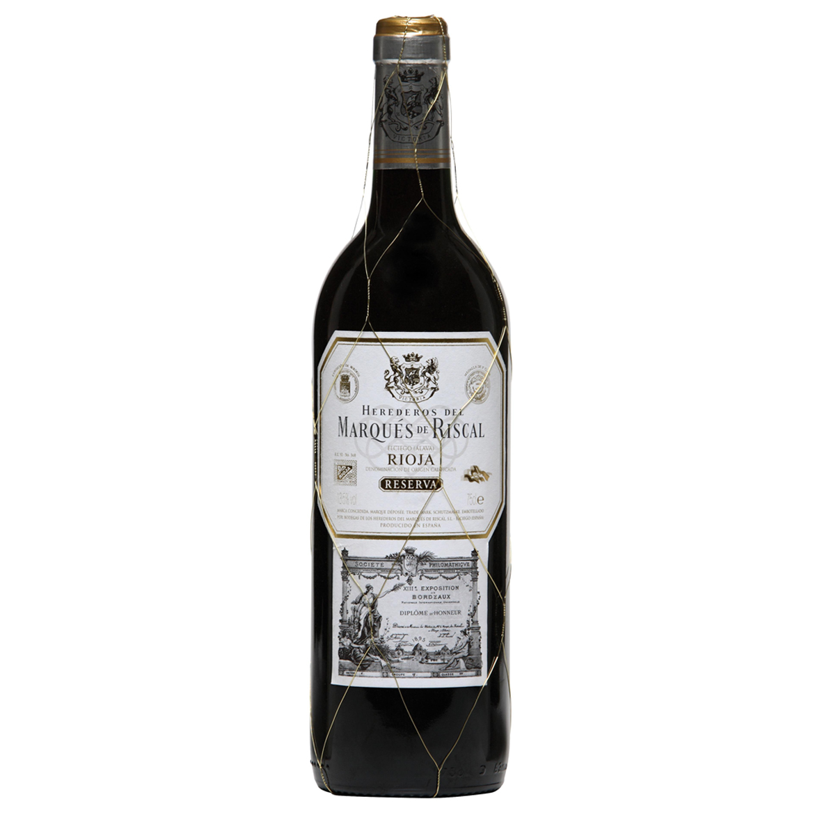 Marques de Riscal Reserva is made from mostly Tempranillo grapes, grown in the best clay-limestone soils of the Rioja Alavesa region. Riscal Reserva’s spend around two years in American-oak casks, producing a classic Rioja: fresh, fine and elegant. This wine goes well with ham, mild cheeses, casseroles which are not highly spiced, bean and pulse dishes, poultry, red meat, grills and roasts.